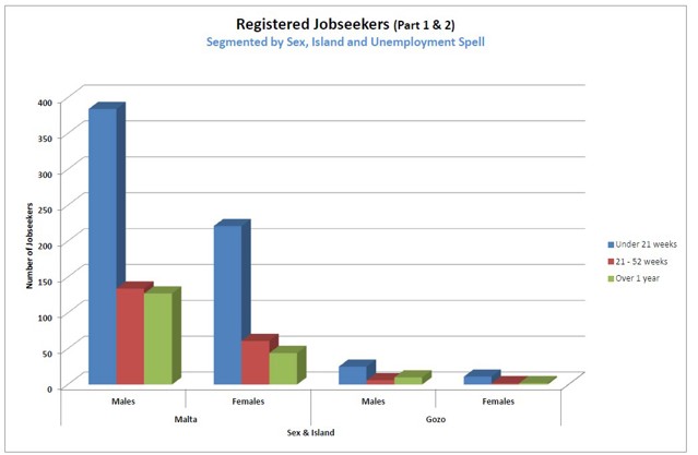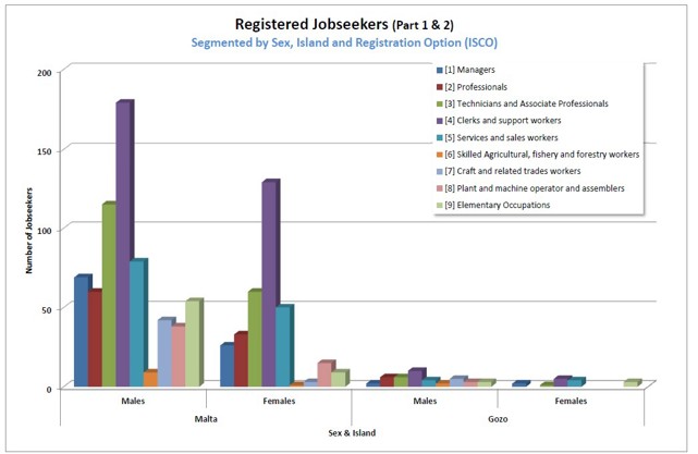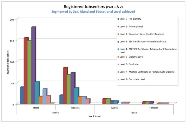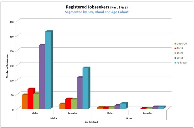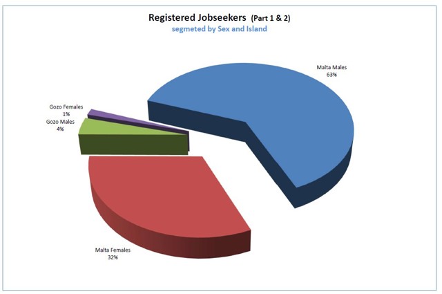1.7 Registered Jobseekers data as at August 2025The following charts will provide a brief analysis of the registered unemployed pool registered with Jobsplus as at the end of August 2025 (last published information by the National Statistics Office). All information is segmented by Gender and Island for ease of reference. |