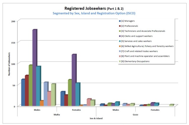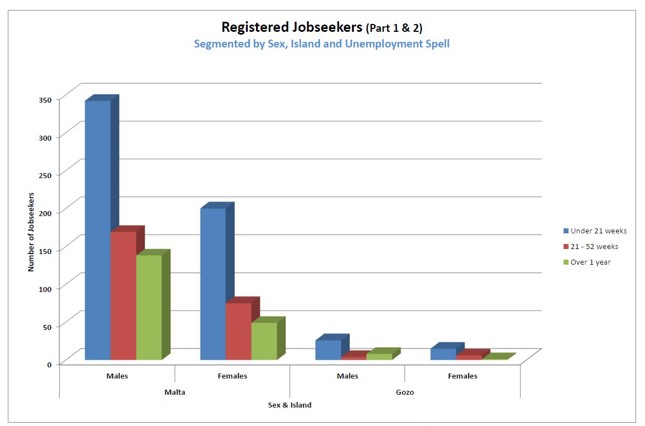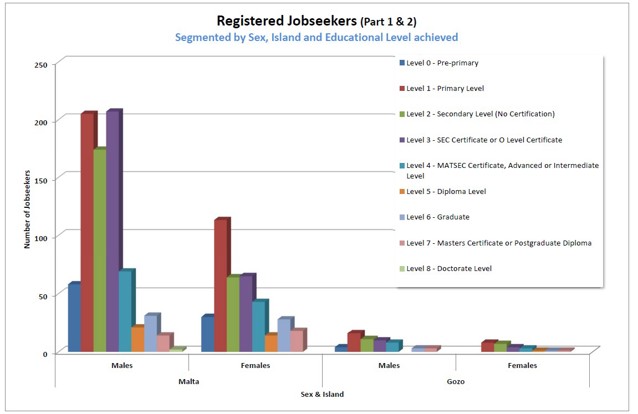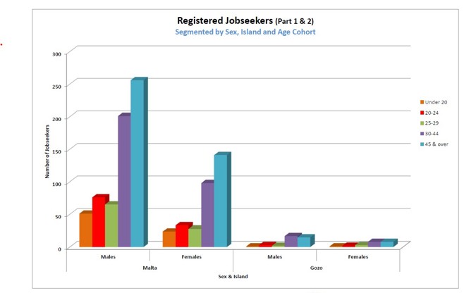 1.7 Registered Jobseekers data as at January 2026The following charts will provide a brief analysis of the registered unemployed pool registered with Jobsplus as at the end of January 2026 (last published information by the National Statistics Office). All information is segmented by Gender and Island for ease of reference. |
