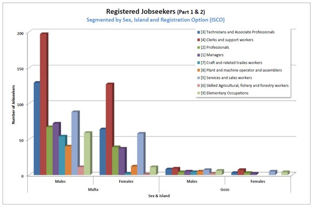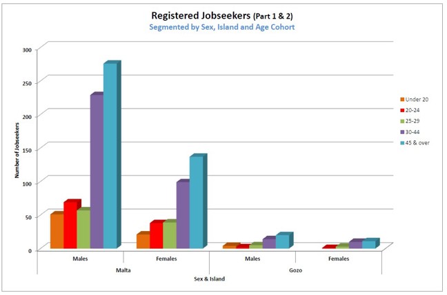 1.7 Registered Jobseekers data as at October 2025The following charts will provide a brief analysis of the registered unemployed pool registered with Jobsplus as at the end of October 2025 (last published information by the National Statistics Office). All information is segmented by Gender and Island for ease of reference. |