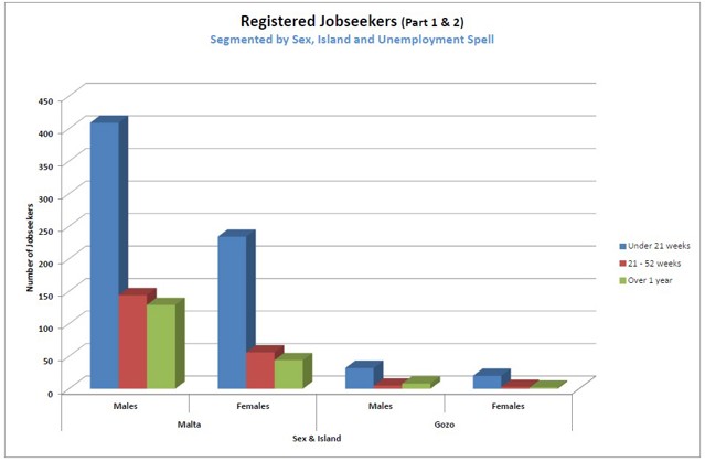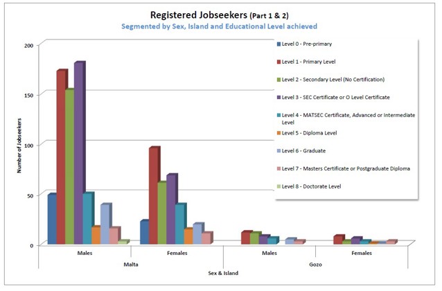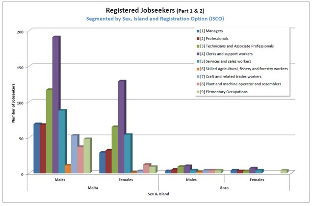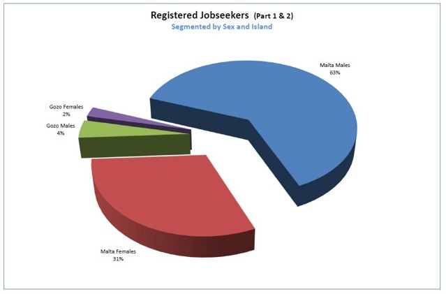1.7 Registered Jobseekers data as at September 2025The following charts will provide a brief analysis of the registered unemployed pool registered with Jobsplus as at the end of September 2025 (last published information by the National Statistics Office). All information is segmented by Gender and Island for ease of reference. |